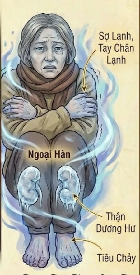 Ngược lại với ở trên, “Dương hư sinh ngoại hàn”. “Dương” là lửa, là năng lượng, là hơi ấm. Thận dương hư là cái lò lửa Mệnh Môn trong người nó yếu đi, không sưởi ấm được cơ thể.